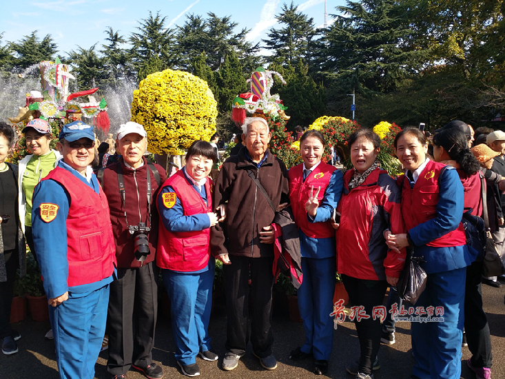 公交隧道巴士公司第六分公司“六路青年服務(wù)線”志愿者團(tuán)隊(duì)陪伴何世進(jìn)、宋式鏞、陳蓮花一起賞菊。