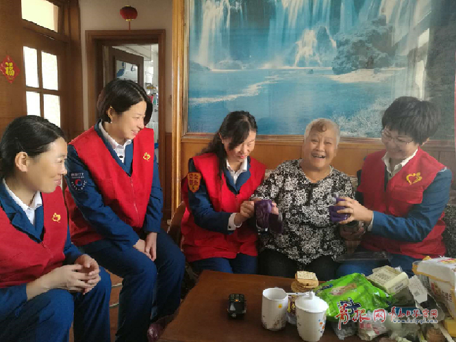 公交嶗山巴士第四分公司高新快線志愿團(tuán)隊(duì)探望張怡老人。