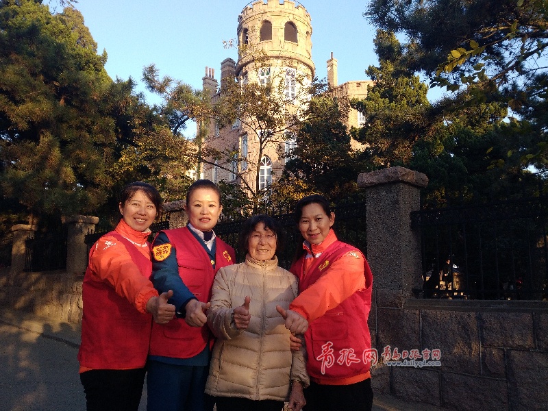 ?? 青島日報/青島觀/青報網訊 今天,公交市南巴士第一分公司志愿團隊的志愿者王愛娜、王麗、楊學貴陪著79歲的臧秀英老人到八大關賞秋景,看看金黃的銀杏樹,火紅的楓葉林和碧波蕩漾的大海,觀賞了聞名中外的公主樓和將軍樓,老人非常高興。