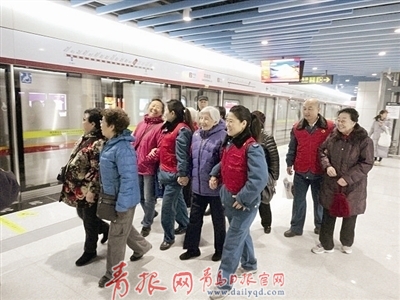 > 正文青島日?qǐng)?bào)/青島觀/青報(bào)網(wǎng)訊 12月3日是地鐵2號(hào)線試乘第一天。熙熙攘攘的人群中,一件件亮眼的紅馬甲顯得尤為引人注目,他們是青島日?qǐng)?bào)/青報(bào)網(wǎng)“愛心陪伴空巢老人”大型全媒介公益平臺(tái)的志愿者。在6支愛心陪伴志愿團(tuán)隊(duì)陪伴下,26位空巢老人率先感受了一把地鐵2號(hào)線將給島城人民帶來的快捷和便利。