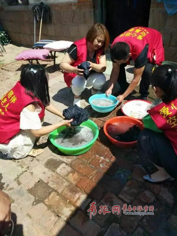 到焦延月老人家里,大家齊上陣,為老人洗了衣服、床單、曬被子,收拾了家里的衛(wèi)生。志愿者們還為每家老人購買了雞蛋、掛面、牛奶、水果、洗發(fā)精等生活用品。