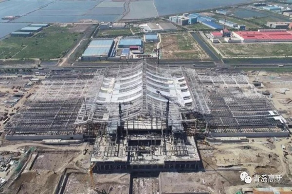 剛剛完成鋼結(jié)構(gòu)施工的紅島站,它距離膠州灣不到兩公里。為了與大海融為一體,紅島站被設(shè)計(jì)成了觀海聽濤的造型,建成之后將成為全國首個(gè)海景高鐵站。整個(gè)車站由10000多個(gè)鋼構(gòu)件拼裝而成,最大的構(gòu)件重達(dá)100多噸。用普通塔吊吊裝的話,需要一年的時(shí)間,而這里只用了五個(gè)月。靠的就是我身后這幾臺(tái)全國僅有的可以行走的塔吊,節(jié)省了大量的拆裝時(shí)間。