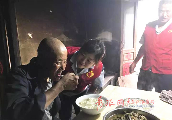 ??? 熱氣騰騰的大餡餛飩上桌,老人吃得津津有味,志愿者的心里很高興。王祝才雖然說(shuō)話語(yǔ)表達(dá)不清,但滿臉欣喜,臨走時(shí),老人不停地和志愿者握手道別。