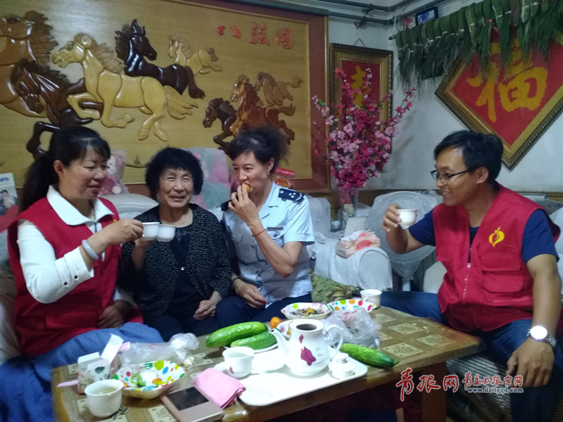 志愿者陪老人一起喝茶,吃水果,在電視上觀看關(guān)于上合峰會(huì)的新聞報(bào)道,端午節(jié)馬上就要到了,老人還提前準(zhǔn)備了粽子和茶蛋送給志愿者。