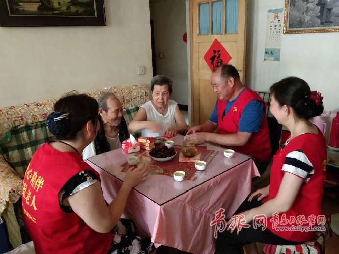 青島日報/青島觀/青報網(wǎng)訊 7月31日下午,市第六人民醫(yī)院“李桂美志愿服務(wù)隊”醫(yī)療第二黨支部的朱兆偉書記和李鳴娟、董文靜、王貞四位黨員志愿者來到愛心陪伴結(jié)對的市北區(qū)阜新路街道南山社區(qū)張本從老人家中,看望家中的兩位老人。