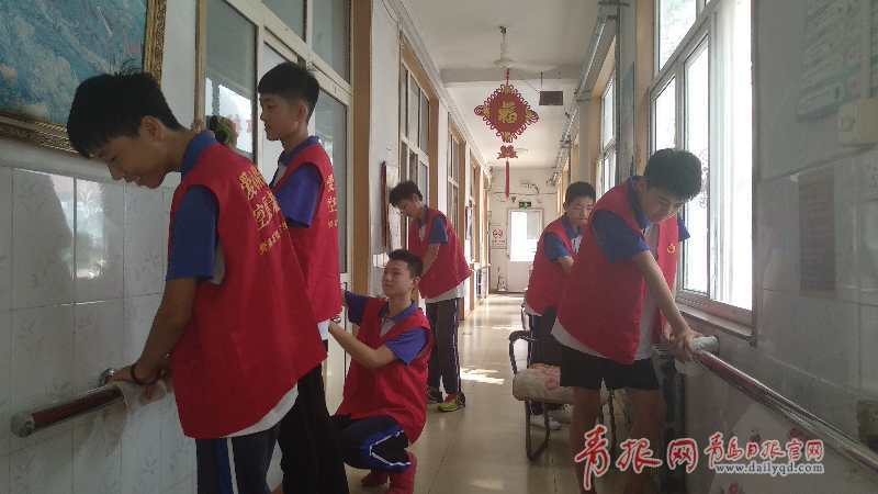 到達(dá)養(yǎng)老院后,志愿者按照分工理發(fā)、打掃衛(wèi)生。敬老院的各個(gè)角落都能看到志愿者忙碌的身影,他們認(rèn)真地清掃屋里屋外的垃圾,擦拭門上、窗上的灰塵,或是陪老人聊天,噓寒問暖,志愿者李康季還為老人維修了洗衣機(jī),幸福的笑容洋溢在每一位老人的臉上。