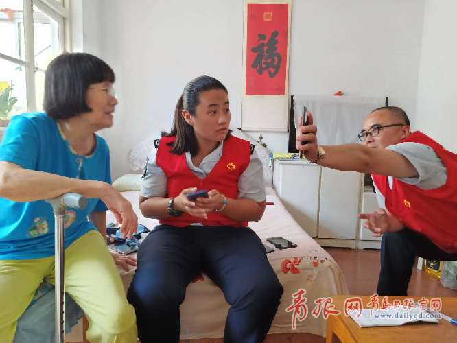 > 正文青島日報(bào)/青島觀/青報(bào)網(wǎng)訊 8月7日上午,公交駕校金牌志愿團(tuán)隊(duì)的志愿者郝玉華、宗黎、楊磊來到空巢老人姜麗美家,在炎炎夏日里為她送上了清涼。老人看到志愿者們的到來非常開心,拉著志愿者們的手問長問短,“天熱要多喝水,別光忙著工作,我很好,還有你們記掛我,太感謝了!”