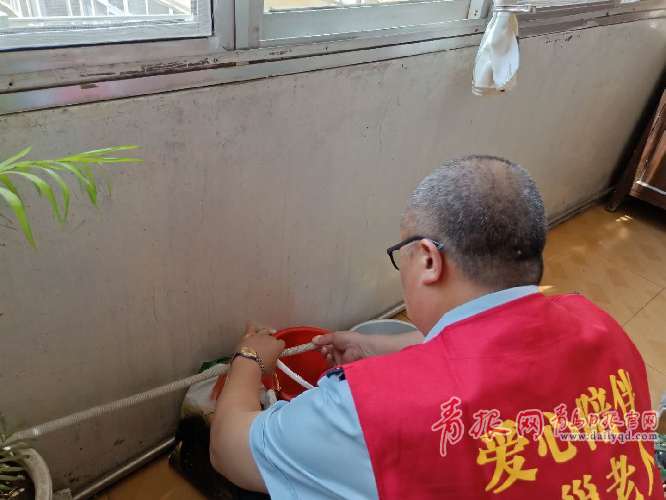 姜阿姨一大早為志愿者們熬制了綠豆粥、煮了雞蛋,準(zhǔn)備了小咸菜,志愿者們感覺回到了家,不是親人卻勝似親人。志愿者們?yōu)槔先藥チ宋鞴系确朗罱禍匚锲?,詢問老人近期的身體狀況,她喜歡在手機(jī)上玩小游戲,志愿者教她如何下載喜歡的游戲,楊磊為老人整理好空調(diào)水管,并為老人擺放好常用的物品。臨行前,志愿者們叮囑老人天熱一定好好保重身體。