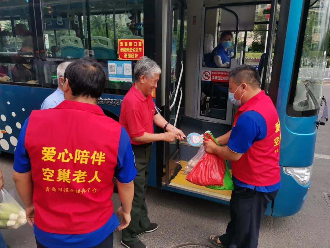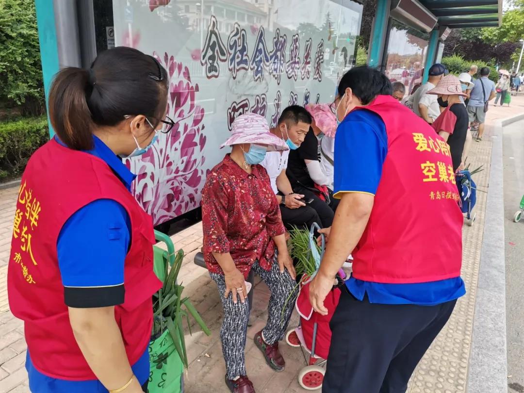 “大姨您慢點(diǎn),我?guī)湍褨|西搬上車?!敝驹刚哐怨鈱?duì)一位趕集的大姨說。7月27日,農(nóng)歷六月初七,是薛家島大集,前來趕集的老年人絡(luò)繹不絕?!皭坌呐惆椤闭媲榘褪康诹止鞠蛉湛麗坌膱F(tuán)隊(duì)的志愿者來到南港安置小區(qū)站,提醒并幫助老年人安全乘車。