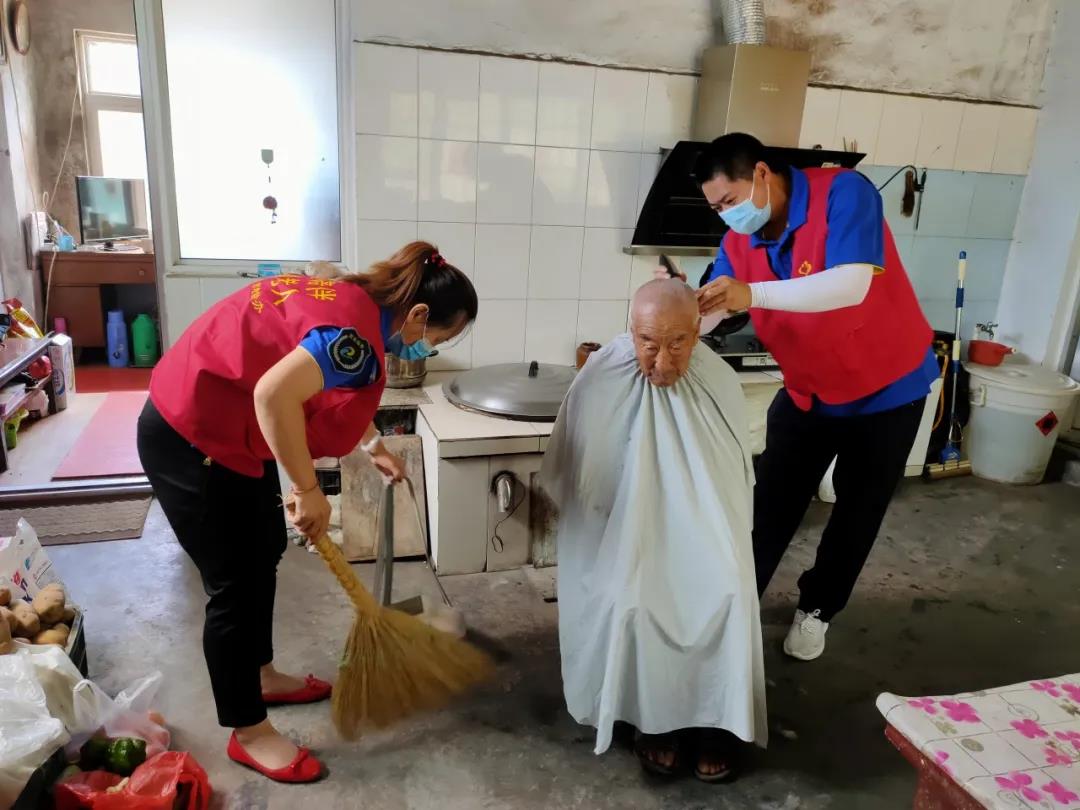 “孩子們,才短短一個(gè)月不見你們,我可想念你們了!”志愿者們剛剛踏進(jìn)殷大爺家的大門,老人便開心地出來迎接說道。志愿者們細(xì)心地將老人扶到屋內(nèi),聊了一會(huì)兒天,志愿者們便開始為老人理發(fā)。“大爺,還是以前的發(fā)型嗎?”老人點(diǎn)點(diǎn)頭,志愿者便忙碌起來。薛冰潔和侯亮為老人洗頭發(fā),趙強(qiáng)為老人理頭發(fā),劉秀娟收拾屋里的衛(wèi)生,大家緊密合作?!昂⒆觽兝戆l(fā)的手藝愈發(fā)精湛了!為你們點(diǎn)贊!”老人開心地說道。