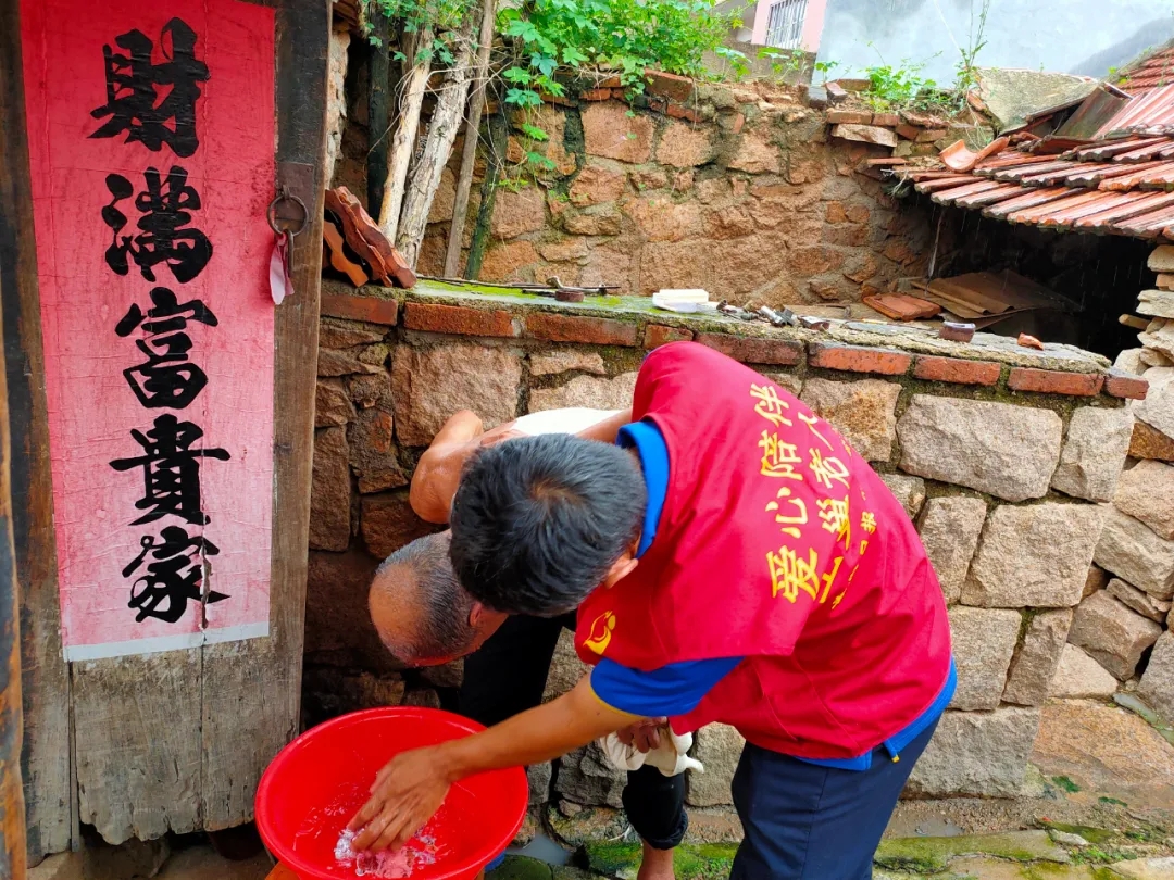 愉快的聊天結(jié)束后,所有人來到院子里,孫岱錄將燒開的水倒進(jìn)盆子,耐心的為大爺清洗頭發(fā),韓燕拿出理發(fā)工具,細(xì)心的為大爺修剪,看著院子里長滿的青草,薛洪雙和孫岱錄合作將院子整理的干干凈凈。