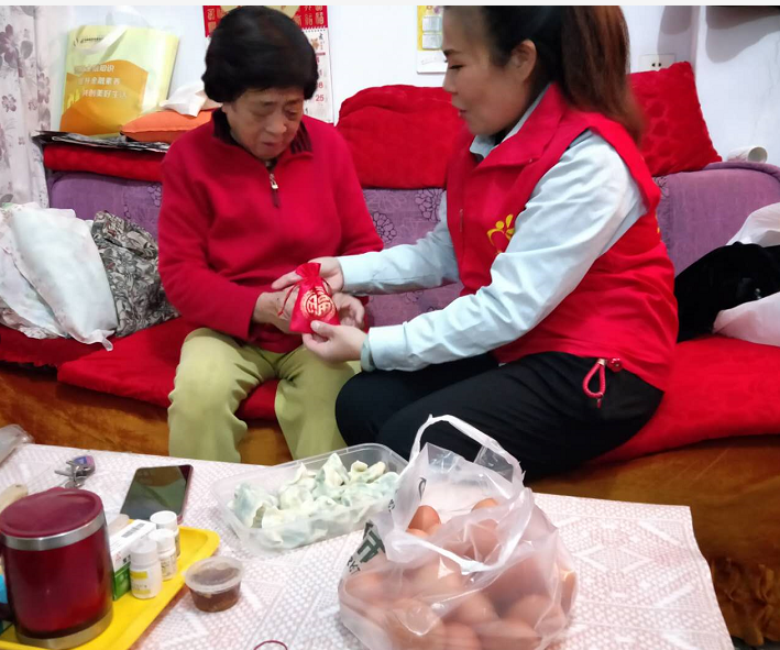 王阿姨常年身體多病,志愿者高華考慮到若是能在阿姨家做飯過節(jié)固然是好,但飯后阿姨會辛苦,于是便下班后匆忙趕回家包了餃子給阿姨送來。志愿者還聽說茱萸有辟邪去災(zāi)之說,便用福袋包裹茱萸給阿姨送來,在高華的眼里老人這大年紀(jì)不方便還是以這樣的方式會更好。阿姨吃到志愿者親手包的餃子連連稱贊,手拿福袋眼眶都濕潤了,嘴里不停的感謝!阿姨非常心疼志愿者,說我們工作很辛苦,還時刻掛念著她,她很過意不去。囑咐我們天冷了,一定要注意保暖,工作中注意安全!臨走時說啥也要出門送我們,在樓梯口依依不舍的站了好久。