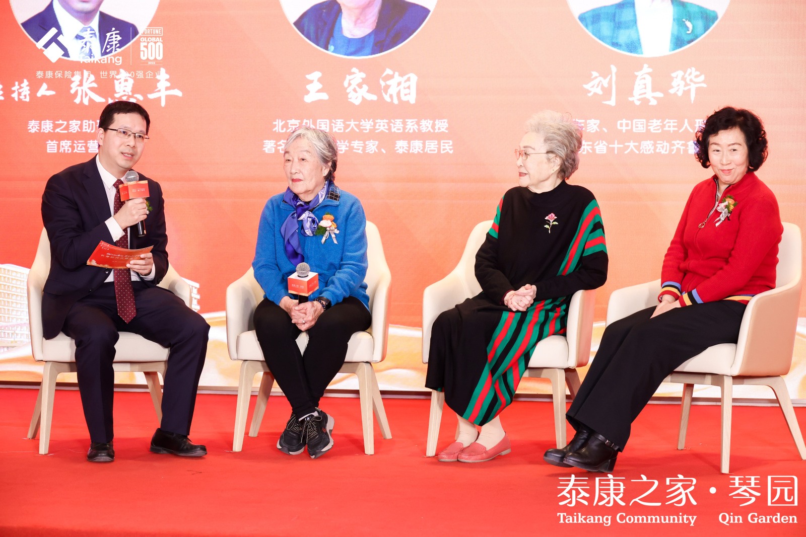??????? 在活動當(dāng)天的圓桌論壇環(huán)節(jié),北京外國語大學(xué)英語系教授、著名英美文學(xué)專家、泰康之家·燕園居民王家湘,著名作家、中國老年人形象大使、山東省十大感動齊魯老人劉真驊,青島市老齡工作委員會辦公室原主任李雪華三位長輩,在泰康之家助理總裁兼首席運營官張惠豐的主持下,重點圍繞養(yǎng)老觀念、養(yǎng)老規(guī)劃以及泰康之家的享老新生活等話題進(jìn)行了精彩分享。