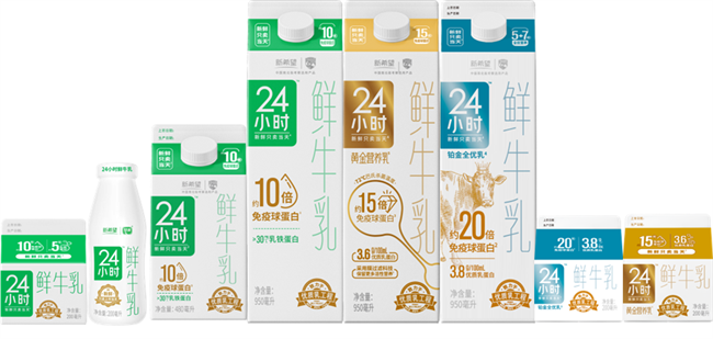 ?????? 作為國(guó)內(nèi)首款實(shí)現(xiàn)“當(dāng)日上架當(dāng)日下架,新鮮只賣當(dāng)天”的鮮奶產(chǎn)品,新希望琴牌乳業(yè)24小時(shí)鮮牛乳一直以“極”質(zhì)新鮮為追求,不斷刷新低溫優(yōu)質(zhì)乳的新鮮營(yíng)養(yǎng)標(biāo)準(zhǔn)。目前新希望琴牌牛奶已經(jīng)形成了24小時(shí)鮮牛乳、24小時(shí)黃金營(yíng)養(yǎng)乳、24小時(shí)鉑金全優(yōu)乳三款產(chǎn)品的“鮮活”矩陣。