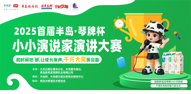 ?????? 青少年兒童蘊(yùn)含著無限的潛力與希望,需要一個(gè)廣闊的舞臺(tái)去展示自我,去探索未知,去錘煉能力,從而實(shí)現(xiàn)綜合素質(zhì)的全面提升。為此,由青島新希望琴牌乳業(yè)有限公司聯(lián)合多家媒體主辦,青島市朗誦藝術(shù)家協(xié)會(huì)協(xié)辦的2025首屆半島·琴牌杯“小小演說家”演講大賽孕育而生。本次大賽面向青島全市6-12歲的小學(xué)生,帶來了豐富的研學(xué)體驗(yàn)、千元學(xué)習(xí)基金和精美禮物,讓孩子們在快樂中學(xué)習(xí),在學(xué)習(xí)中成長!