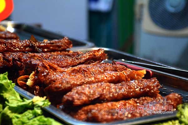 啤酒節(jié)真不是啤酒的饕餮盛宴,走進啤酒城第一眼就是大篷邊上的特色美食小吃,爆肚、炸串、烤肉、果飲,枚不勝舉。吃貨們望見美食,锃亮的雙眼,無敵的吃相。不是扶著墻進,絕對是扶著墻出。對他們而言,玩在這里不重要,吃在這里最需要。