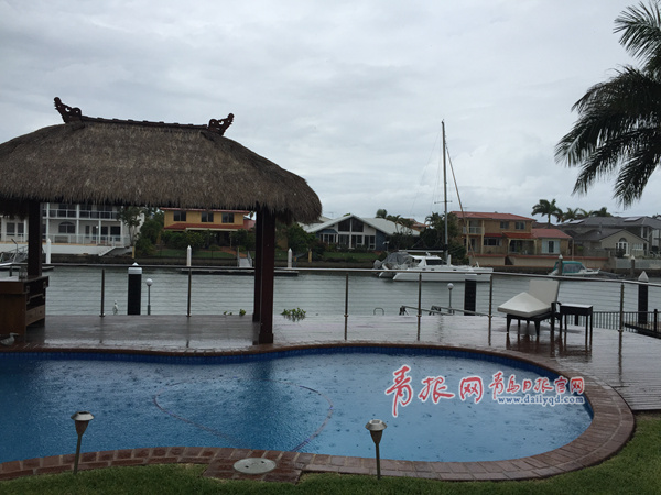 青島籍前國腳陳剛家后花園 涼亭富有中國韻味