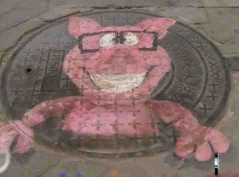鄭州街頭現3D卡通窨井蓋 形象逼真吸引眼球