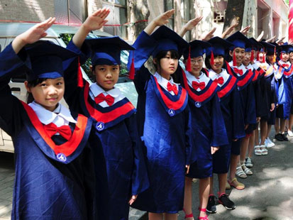 小學生集體穿學士服畢業(yè) 提前體驗大學氣息