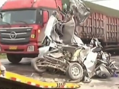 監(jiān)拍面包車被兩貨車前后夾擊 瞬間成紙片