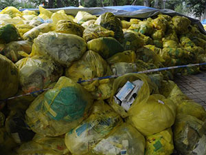 濟南一醫(yī)院門口醫(yī)療垃圾堆積如山 市民捂鼻而過