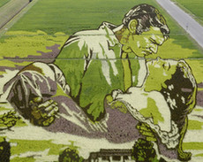 日本青森縣農(nóng)民稻田作畫布 創(chuàng)作美國大片