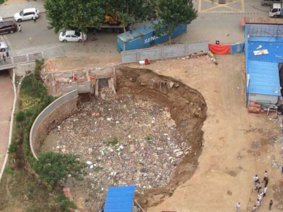 李滄一水井突然塌陷 4輛車掉落巨大水坑中