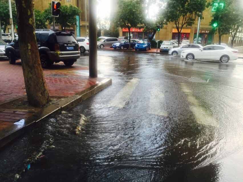 實(shí)拍:青島突降大雨 道路積水嚴(yán)重