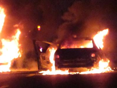 組圖:渝湘高速三車夜間連撞 其中兩輛燒成光架