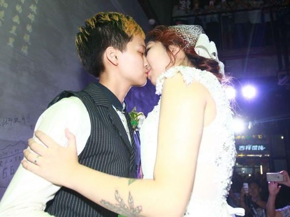 組圖:吉林女同性戀辦婚禮 眾人祝福甜蜜擁吻