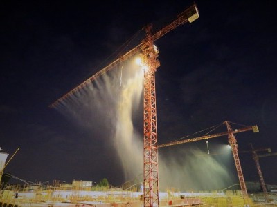 組圖:智慧!湖北一工地高空塔吊綁噴頭降塵