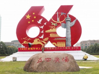 組圖:巨型雕塑亮相五四廣場(chǎng) 歡慶祖國66歲華誕