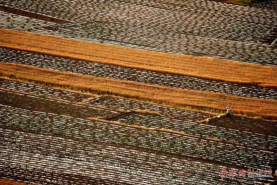 希望的田野上,黃綠相間,構(gòu)成一幅幅美麗的豐收?qǐng)D。