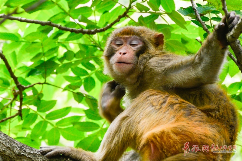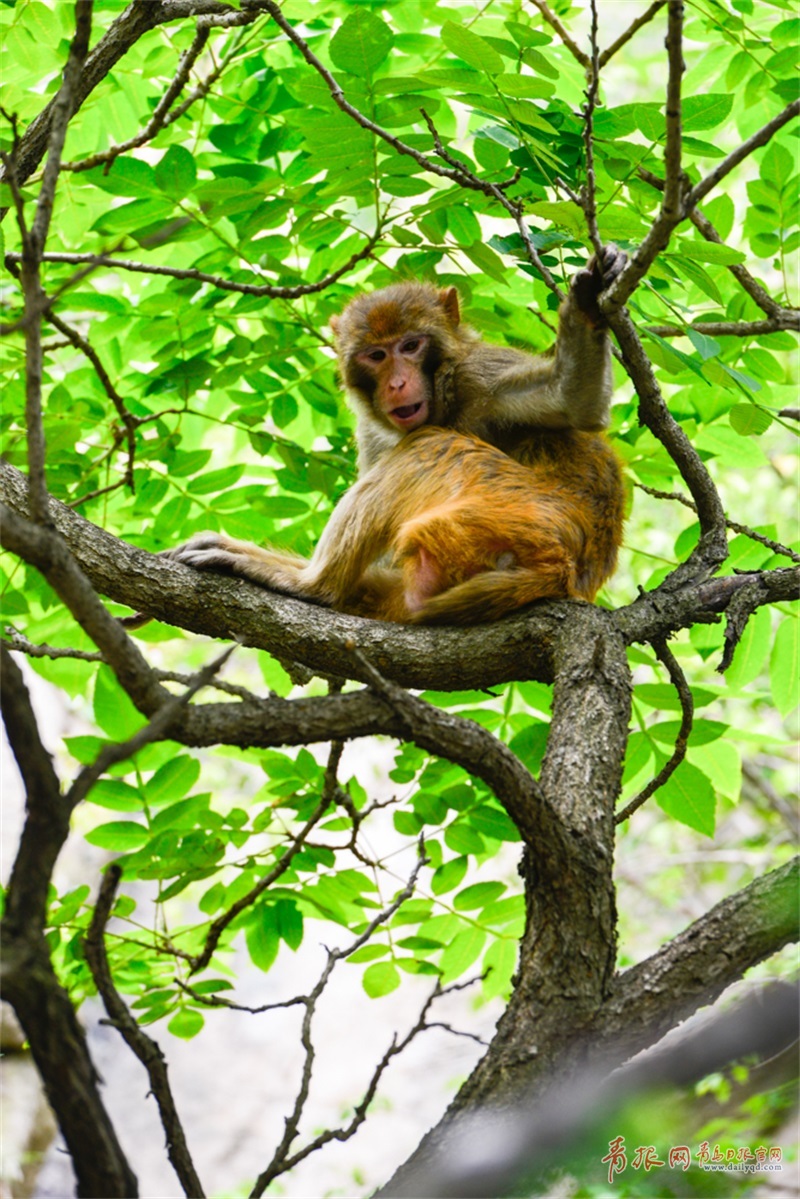 憨態(tài)可掬的猴子在山間自由穿梭。