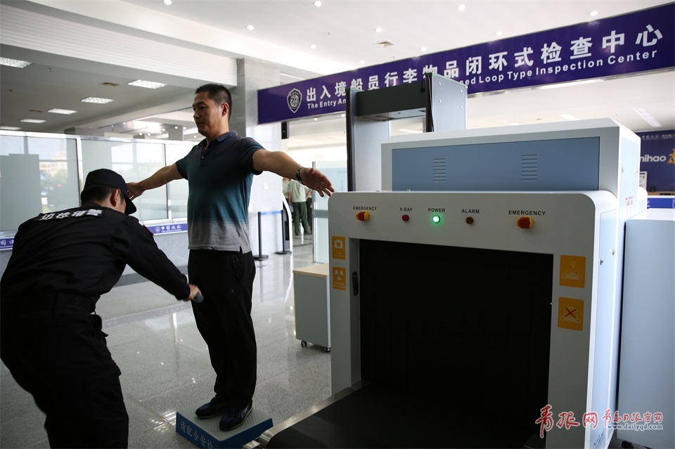 黃島口岸邊檢通關(guān)服務(wù)中心由黃島邊防檢查站建設(shè),具備業(yè)務(wù)受理、執(zhí)法辦案、反恐維穩(wěn)等13項(xiàng)功能。其中,在結(jié)合黃島口岸入出境(港)人員特點(diǎn),在全國海港邊檢站首推“閉環(huán)式檢查中心”,高標(biāo)準(zhǔn)配備查驗(yàn)設(shè)備,研發(fā)使用X光行李物品檢查儀、暴恐音視頻查緝平臺等系統(tǒng),由專職輔警開展查驗(yàn)工作。對船員及行李物品加裝“邊檢啟封簽”,有效消除口岸管控盲點(diǎn),維護(hù)通關(guān)秩序。