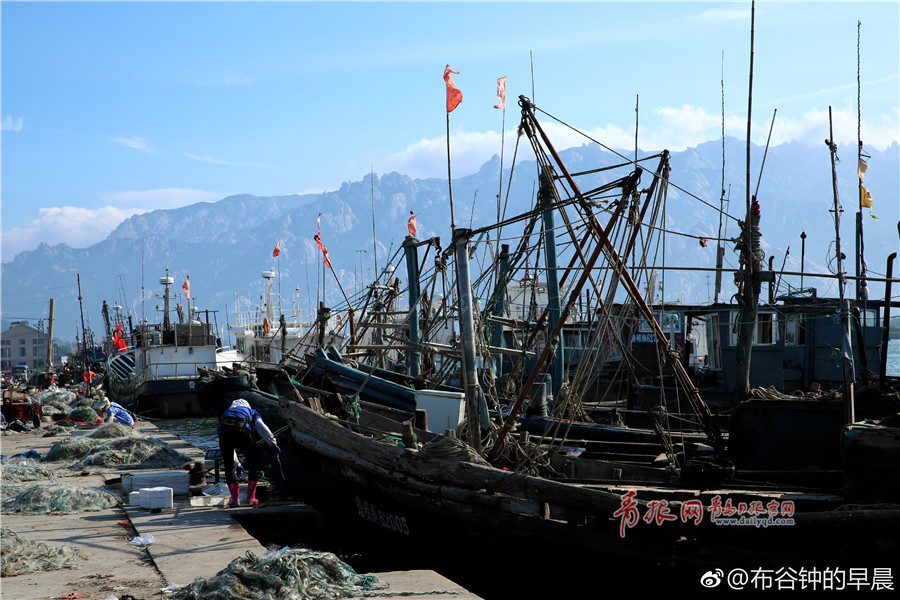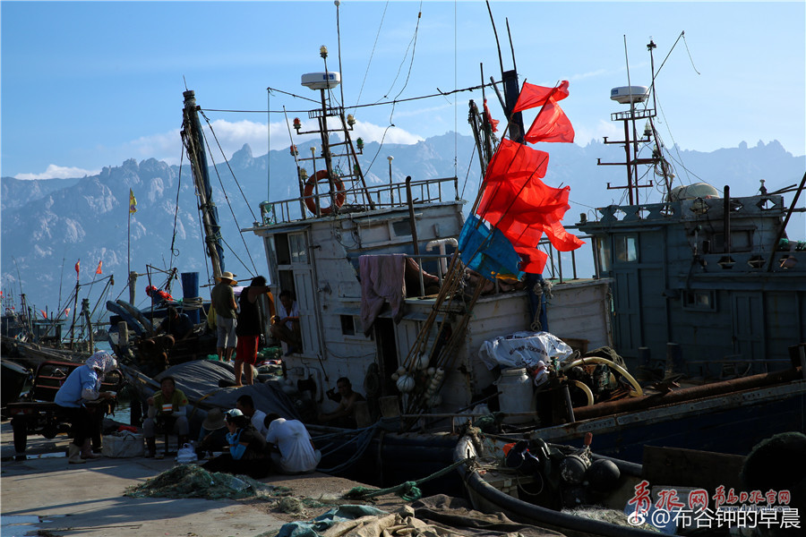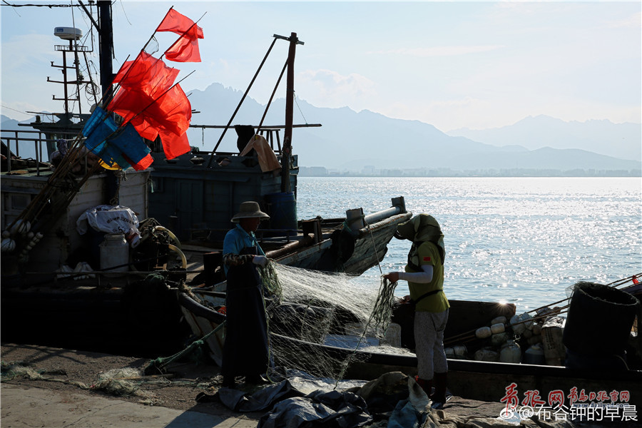 距本年度伏季休漁期結(jié)束僅余一周時間,漁民們開始進入修船補網(wǎng)階段。(圖/@布谷鐘的早晨)