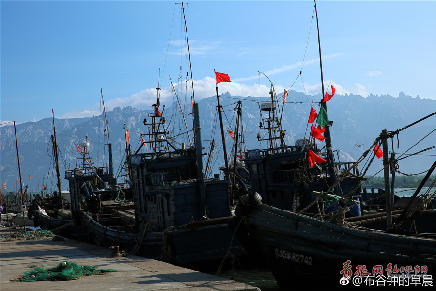 有序排列的漁船,在藍天白云和遠山的印襯下,形成一幅絕美的漁家風情圖,暗藏著收獲的喜悅。