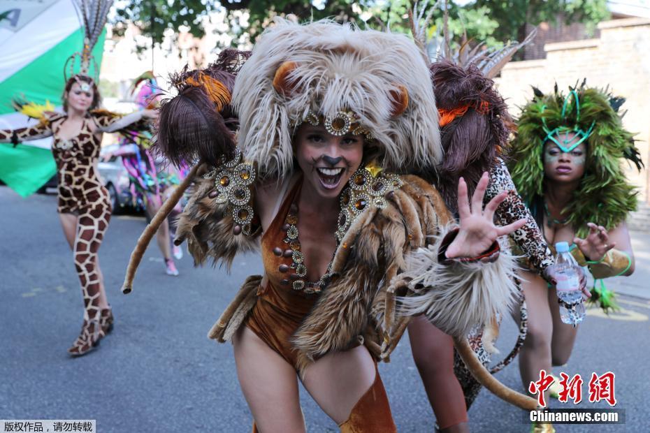 當(dāng)?shù)貢r(shí)間8月28日,英國(guó)諾丁山嘉年華持續(xù)舉行,參加巡游者在倫敦街頭狂歡。