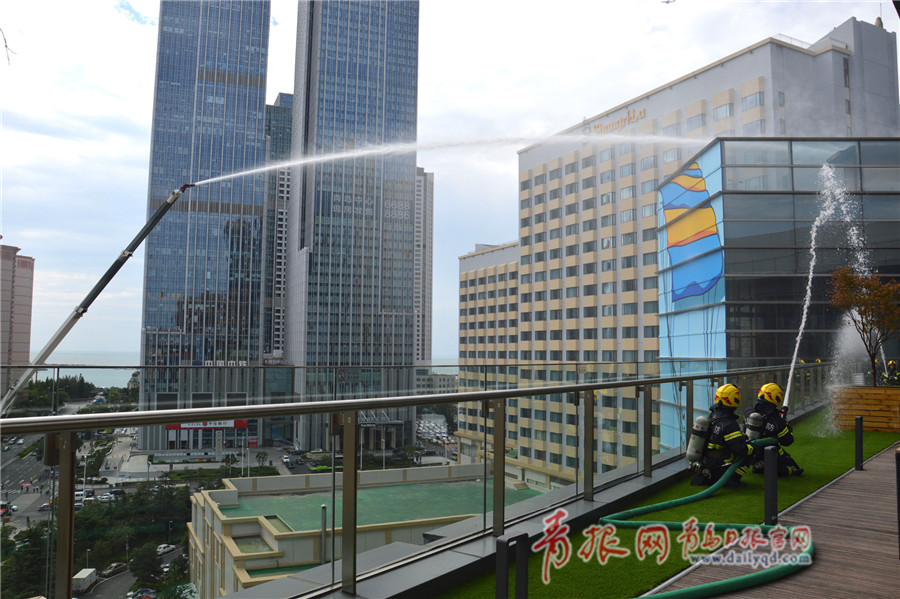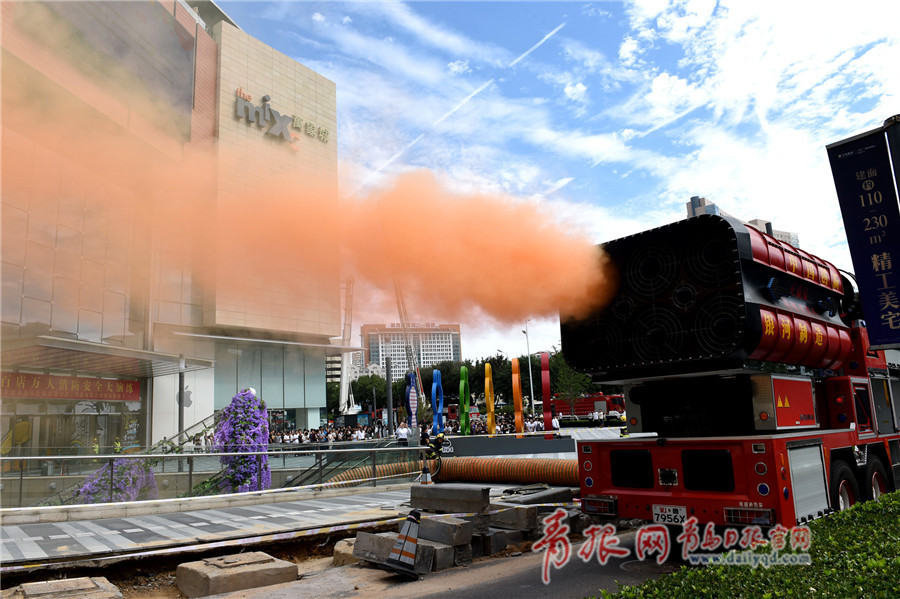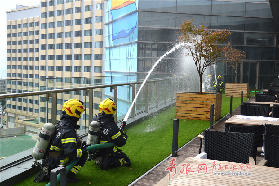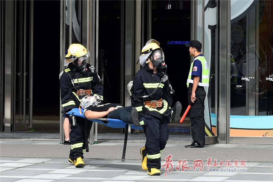 青島日?qǐng)?bào)/青島觀/青報(bào)網(wǎng)訊 29日上午,市公安消防支隊(duì)在萬(wàn)象城舉行滅火救援實(shí)戰(zhàn)拉動(dòng)演練。演練假設(shè)萬(wàn)象城2層南中庭客用衛(wèi)生間和6層遼河渡口店鋪因電線短路著火,現(xiàn)場(chǎng)濃煙滾滾,有人員被困。(記者 劉成龍)