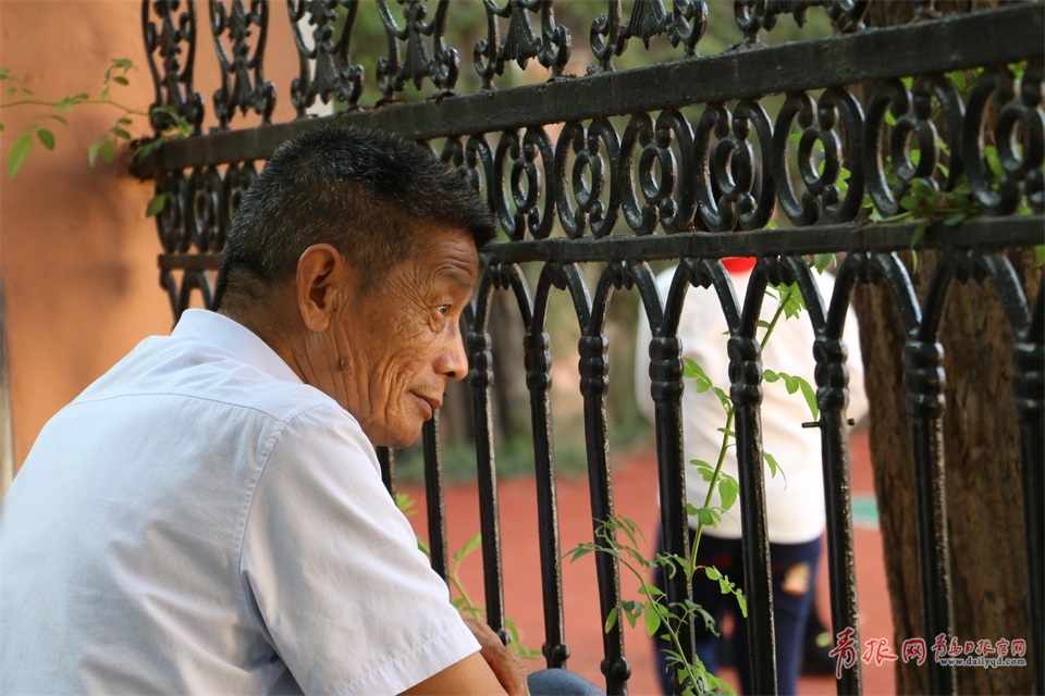 這位老爺爺一直保持著一個姿勢,一動不動地看著自己的孩子,臉上帶著笑容。