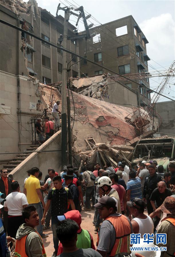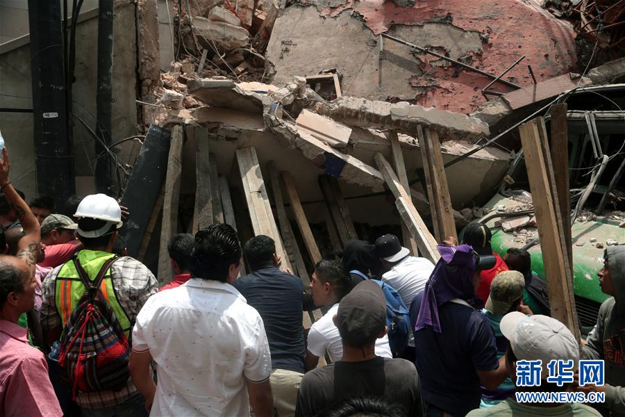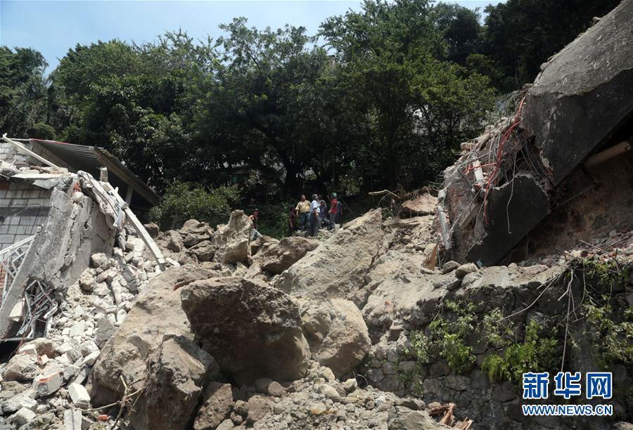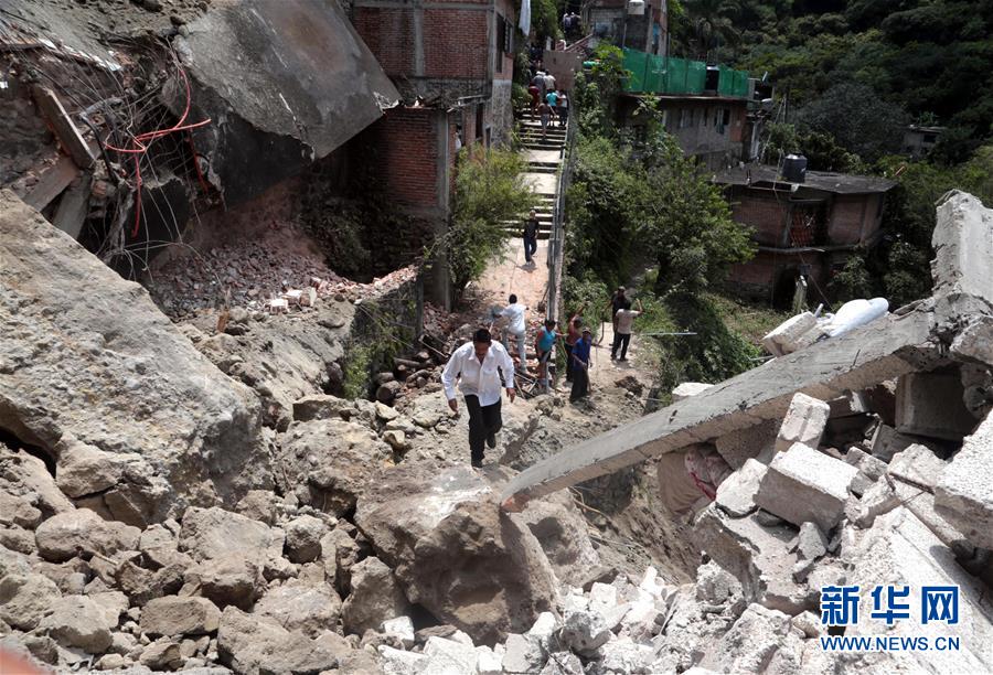 這是9月19日在墨西哥莫雷洛斯州庫埃納瓦卡市拍攝的在地震中損毀的建筑廢墟。