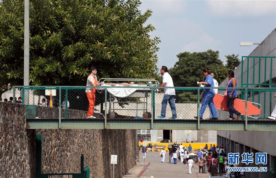 9月19日,在墨西哥中部莫雷洛斯州庫埃納瓦卡,人們運送一名傷者。