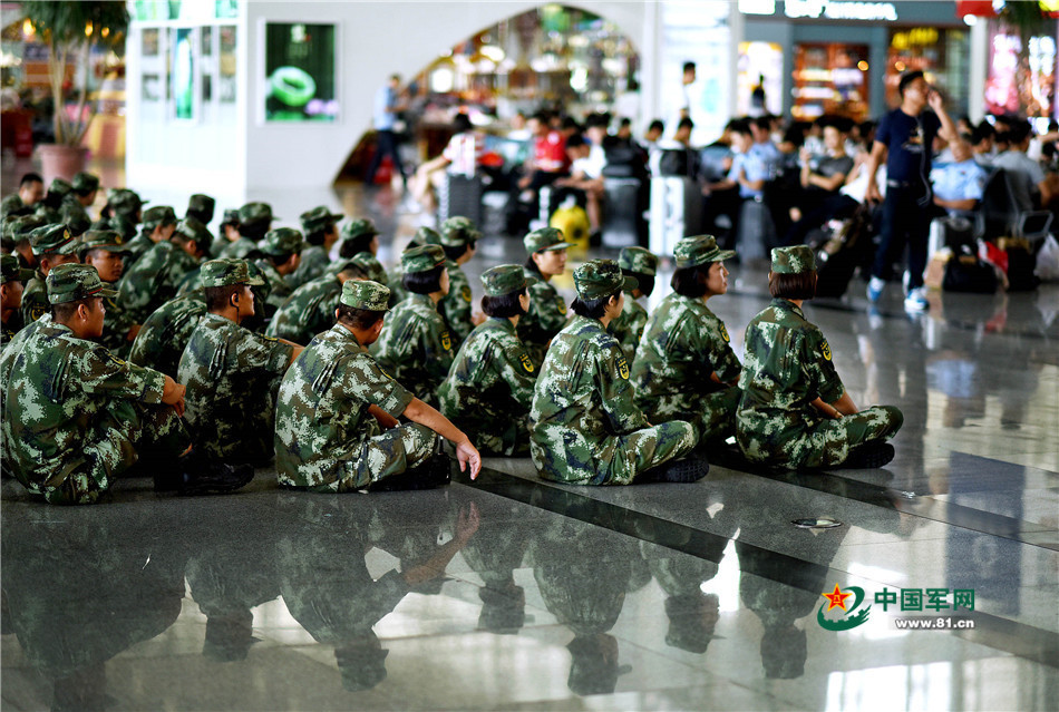 女兵在候車,她們形象好、氣質(zhì)佳,讓不少旅客頻頻回頭。