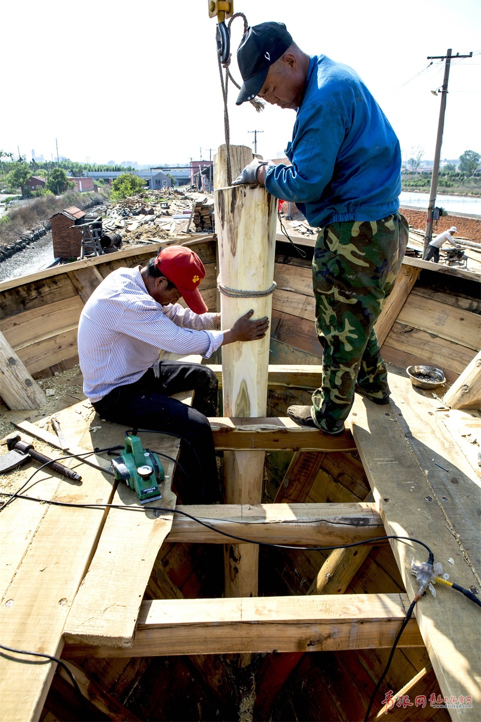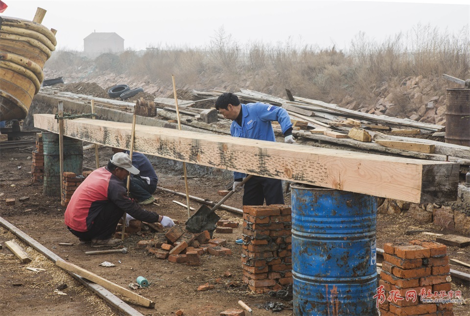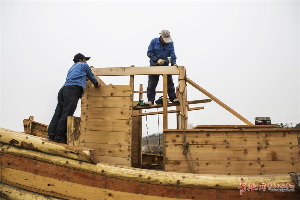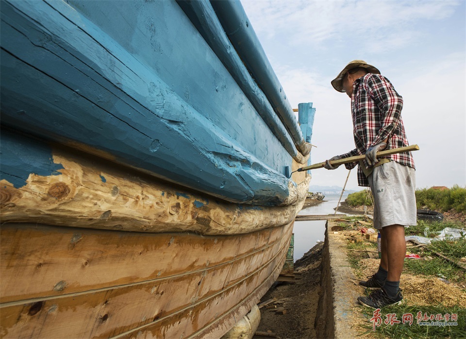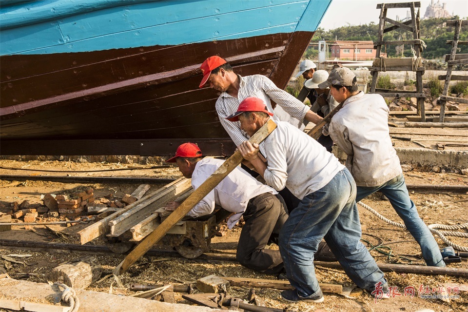 傳統(tǒng)的木船百分之八十都依賴人工打造,掌握這門手藝不僅需要天賦和悟性,還需要實(shí)實(shí)在在的體力,風(fēng)吹日曬,艱苦異常,如今村里的年輕人都不愿再干這行。圖為架船首木。