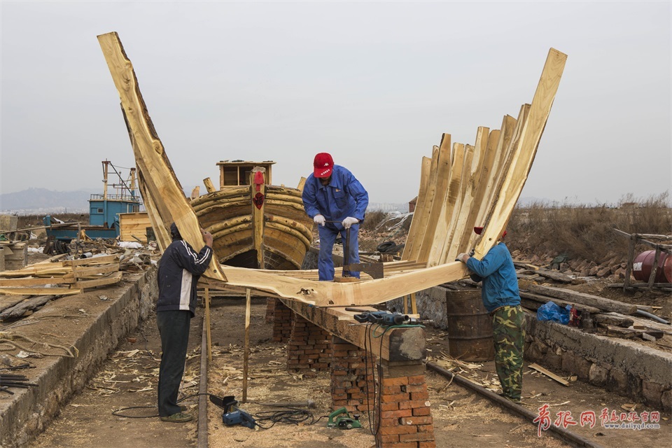 中國人說:靠山吃山、靠海吃海。這不僅是一種因地制宜的變通,更是順應(yīng)自然的中國式生存之道。從古至今,膠州灣畔迢迢的蔚藍(lán)海岸線一路延伸,沿岸的人們傍海而居打漁為生。曾記否,兒時(shí)在海邊玩耍時(shí)經(jīng)常能看見海中來來回回的木船,船不大,數(shù)量卻不少,夕陽的余暉下的小船兒好似初升的彎月,在水面上泛起片片漣漪。時(shí)代的巨輪滾滾向前,現(xiàn)在,水上“一葉扁舟”的情形已經(jīng)很少見到,那一艘艘精巧別致、手工制造的木船,隨著生產(chǎn)方式的變遷,漸漸駛離了人們的視野,??吭诹藲q月的彼岸。