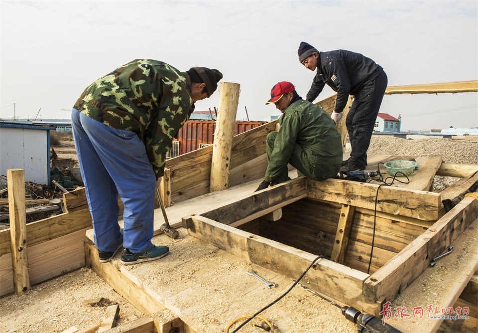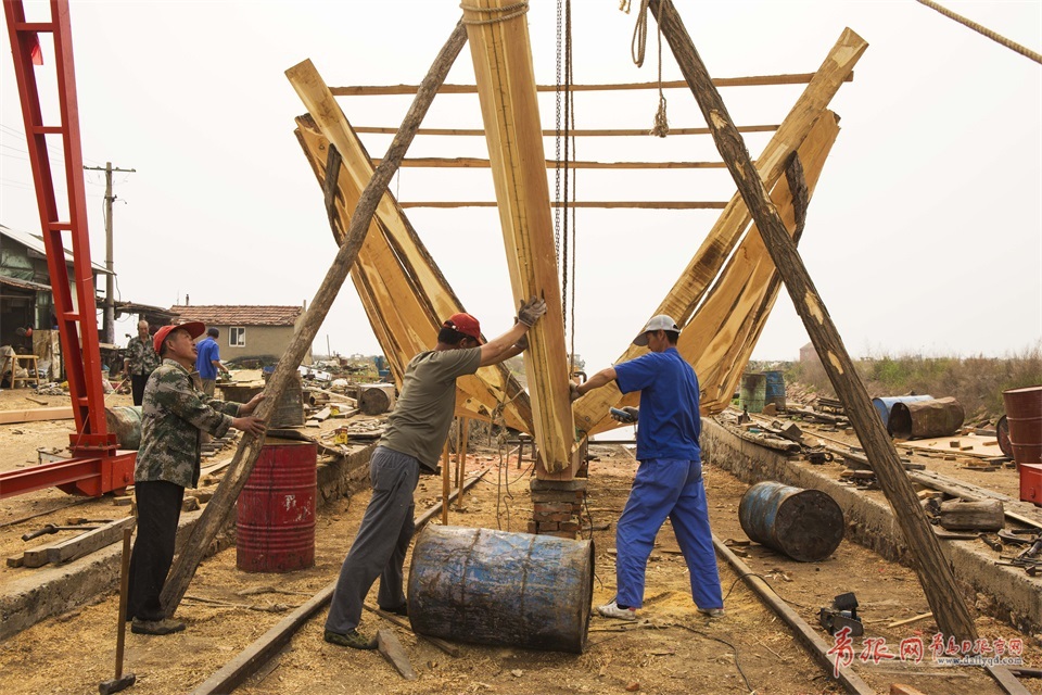 木質(zhì)漁船從選料加工到木質(zhì)漁船成型100多道工序純手工打造,技師們大多是木匠出身,在制船這個(gè)行當(dāng)至少干了幾十年。一艘木船出海前大多經(jīng)過備料、定盤、艌船、做櫓、做舵、做桅桿和帆、做錨以及刷桐油等八個(gè)步驟,一步都不能含糊!其中骨架多用結(jié)實(shí)且不易變形的槐木、紅松、榆木,船身則用的是白松、紅松、杉木等。圖為鋪龍骨。