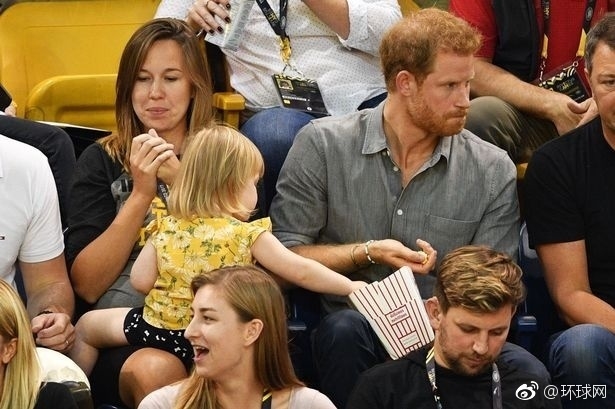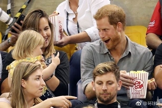 英國哈里王子最近去看球賽時旁邊坐了一個2歲的小女孩兒,小女孩兒趁王子不注意,竟然伸出小手去拿王子的爆米花吃,還屢次得手吃得津津有味。哈里王子發(fā)現后,鬼臉表情也是各種可愛。