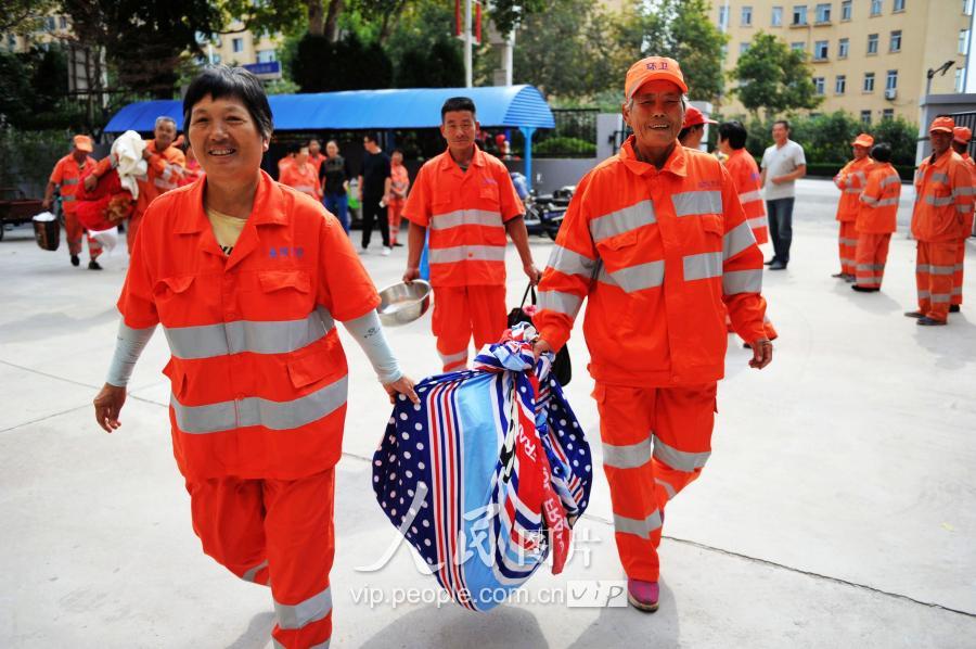 環(huán)衛(wèi)工人在搬進(jìn)免費(fèi)公寓。