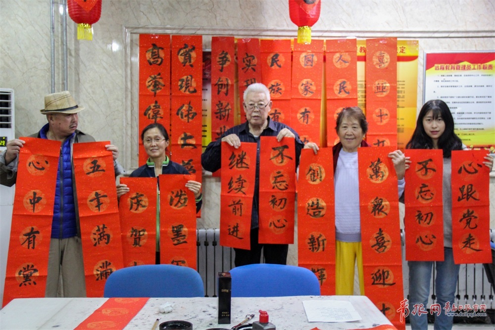 云南路街道組織開展“慶賀十九大 揮墨寫輝煌”活動。聽完報告后,黨員們通過手中的毛筆抒發(fā)自己對十九大召開的激動和祝福之情,將活動的氛圍推向高潮。