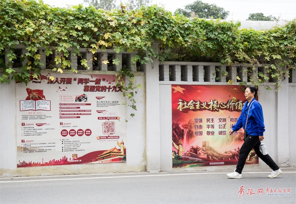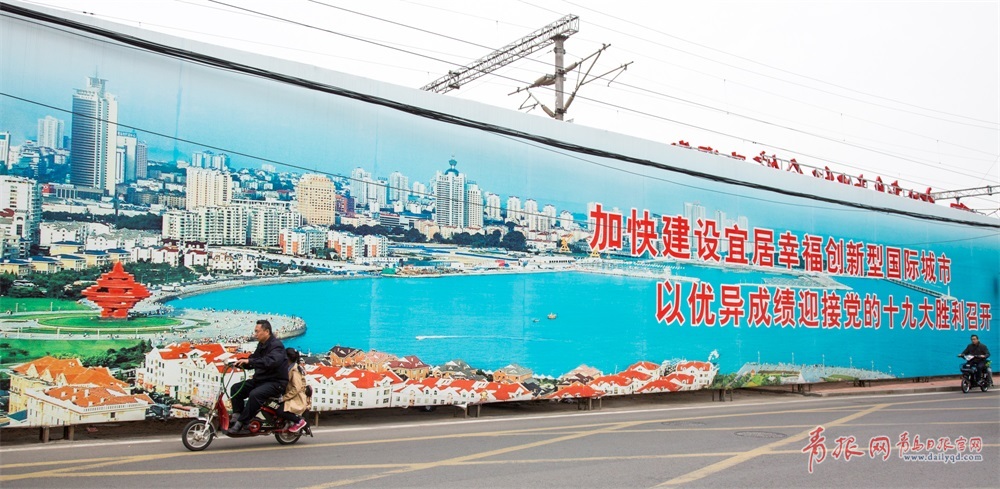 海岸路上喜迎十九大的宣傳展板。